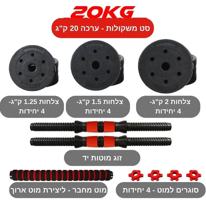 סט משקולות 20 קילו לאימונים בבית/בחוץ