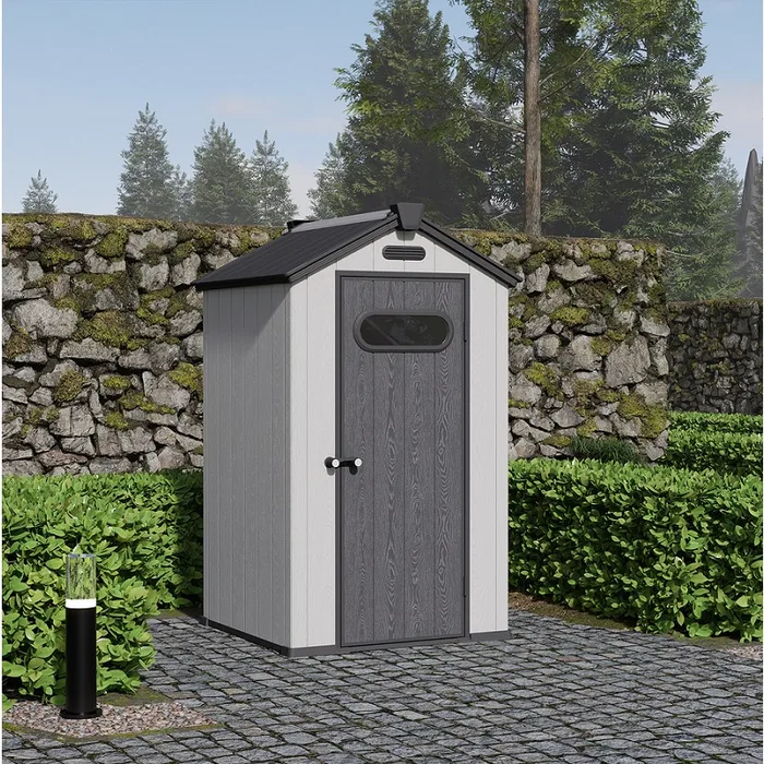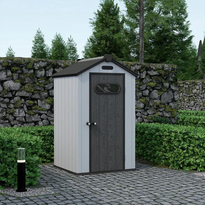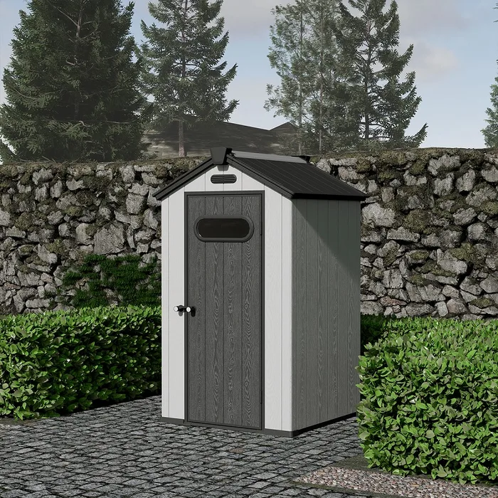 מחסן פלסטיק לגינה, מרפסת או פטיו, שילוב מושלם של אחסון קומפקטי ועיצוב פרקטי.
