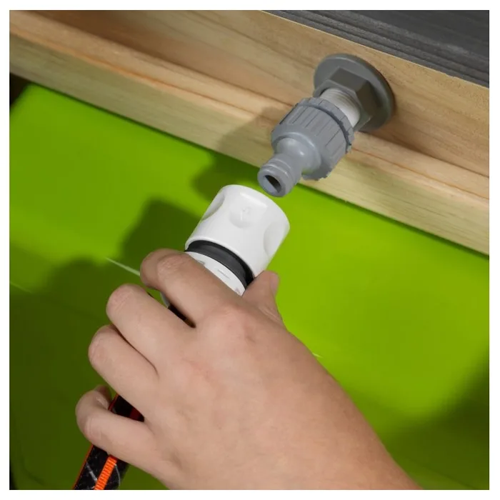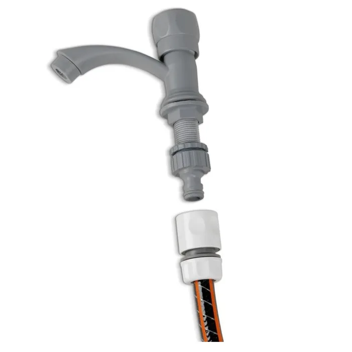 ✅ כיור נשלף עם ברז עבודה אמיתי – הברז פועל בחיבור לצינור גינה, והכיור מאפשר ניקוי קל ונוח.