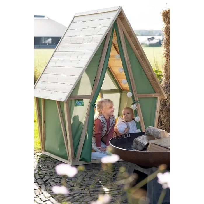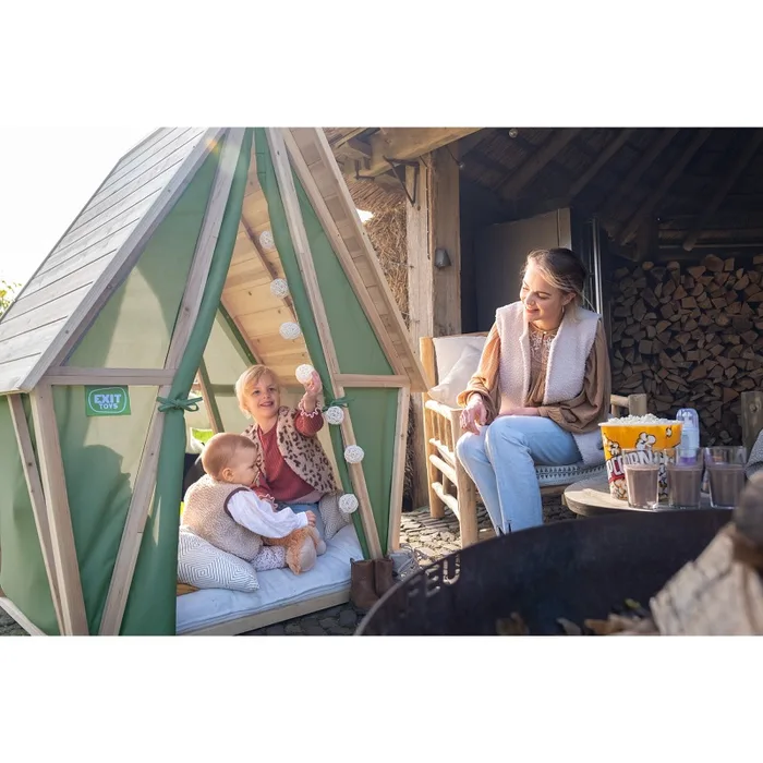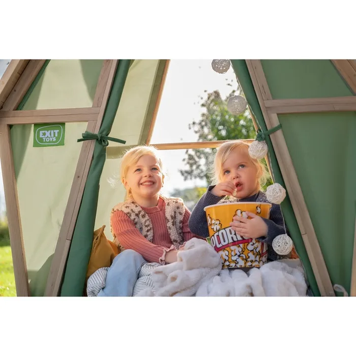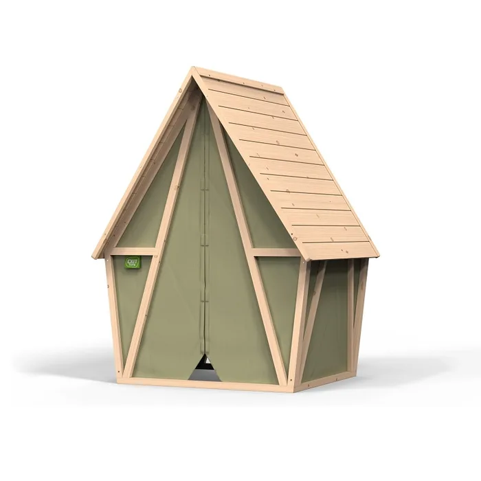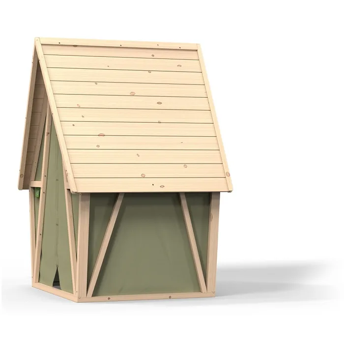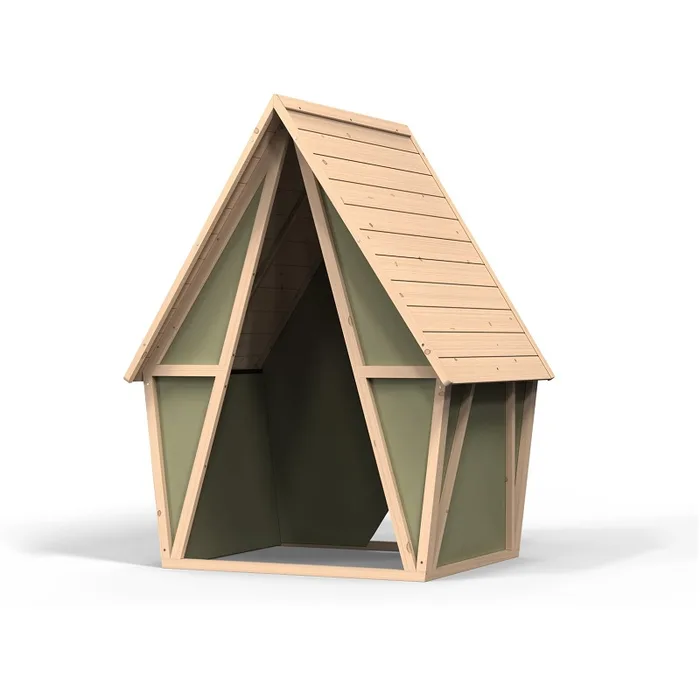 בית משחק לילדים בעיצוב ייחודי עם שילוב של עץ טבעי ובד אוהל צבעוני – לזמן משחק שהוא גם חוויה וגם חלום.