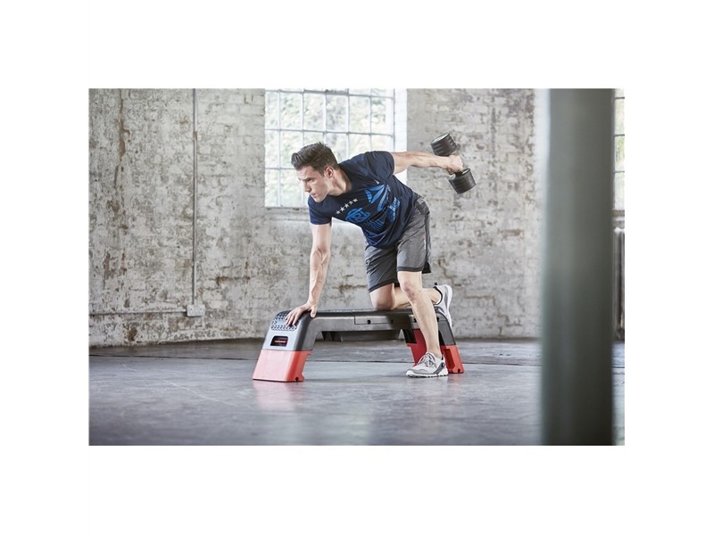 המדרגה מתכווננת מגובה 20 ס"מ לאימונים בעצימות נמוכה ועד לגובה 35.5 לאימונים בעצימות גבוהה