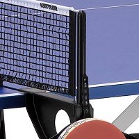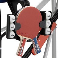 מתקן מיוחד לאחסון מחבטים וכדורים בצד השולחן.
