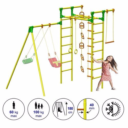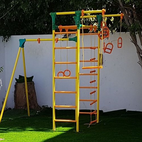 עמודי המתקן עבים בקוטר 40 מ"מ .מתקן ספורט לחצר בטיחותית ביותר