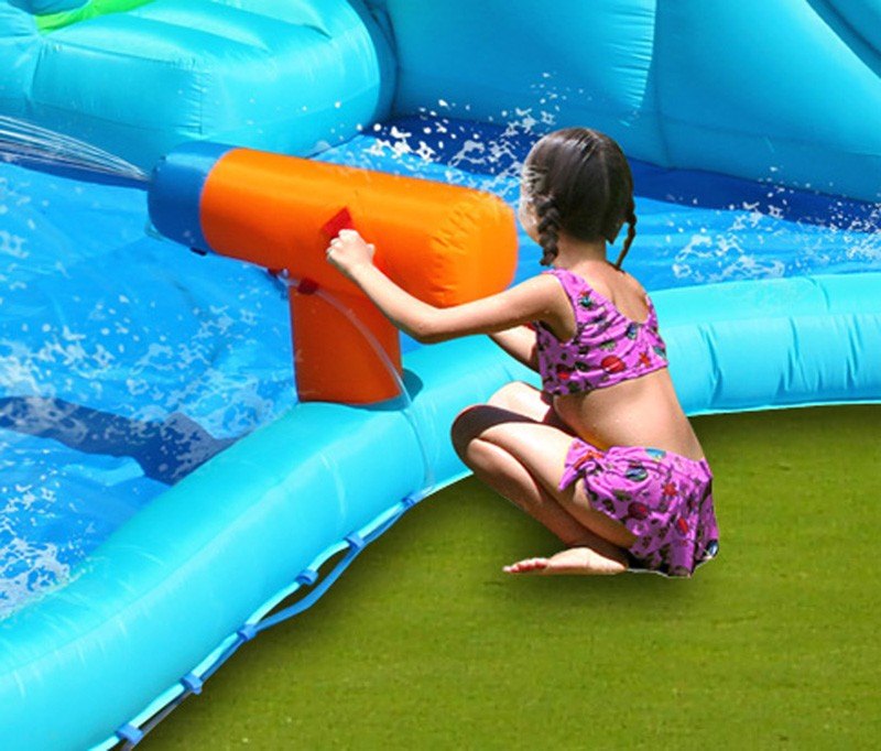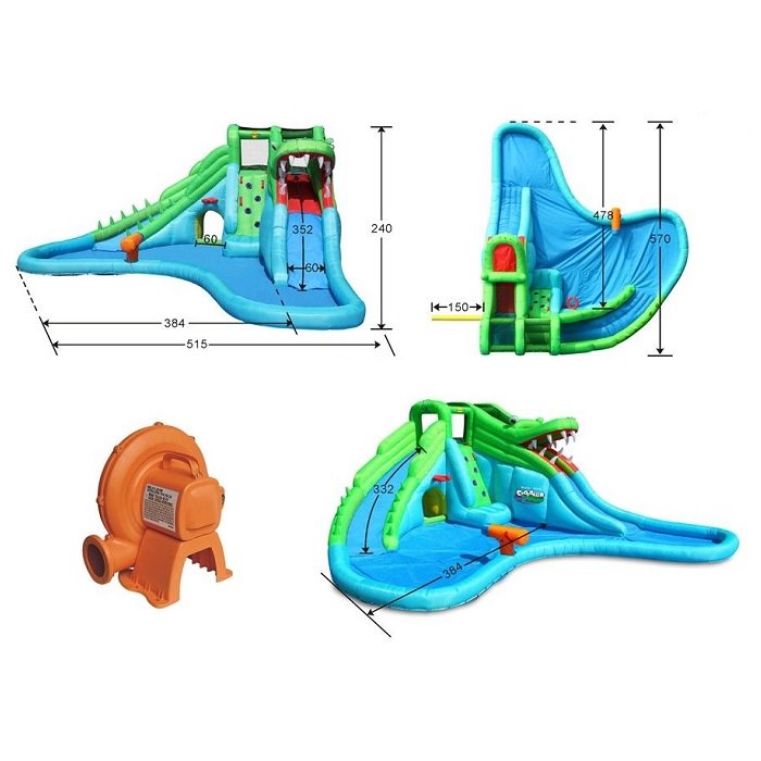 מתקן מים מתנפח 9517 הכולל 2 מגלשות + תותח מים בעיצוב תנין מבית HAPPY HOP