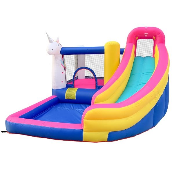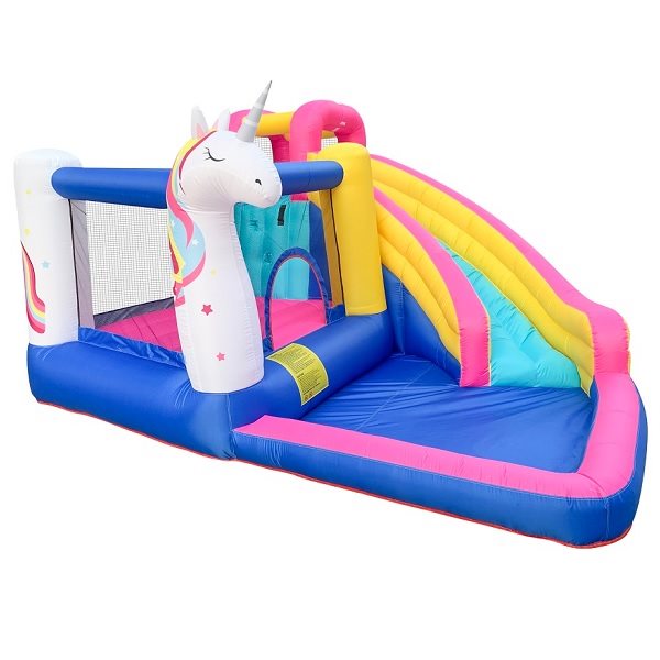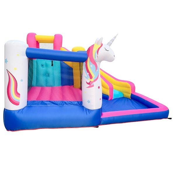 מתנפח מים בעיצוב חד קרן 63109 כולל מתקן קפיצות/קיר טיפוס/מגלשה/ברכת שיכשוכית JUMPER