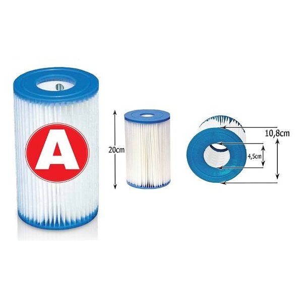 פילטר A באורך 20 ס"מ, קוטר 10.8 ס"מ, חור פנימי 4.5 ס"מ למשאבת הבריכה INTEX 59900