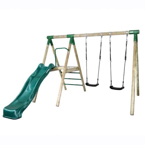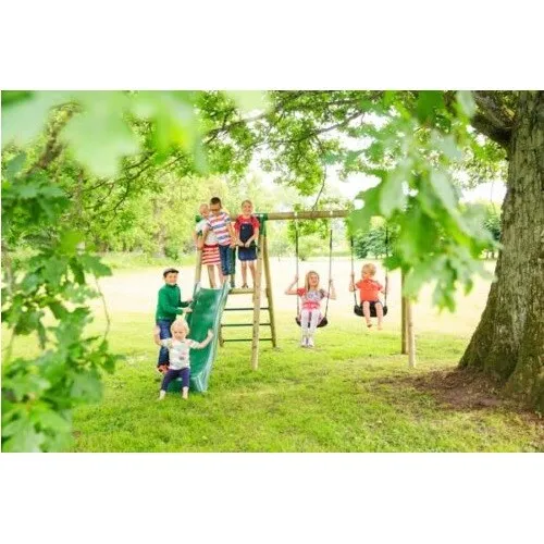 מתקן נדנדה לילדים מעץ עם מגלשה וזוג נדנדות 140280 מבית CITYSPORT תוצרת אירופה