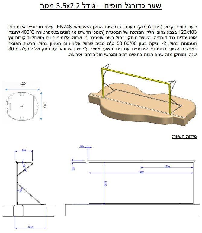שער כדורגל חופים תוצרת איטליה אורך 5.5 מטר גובה 2.2 מטר 100990 מבית CITYSPORT