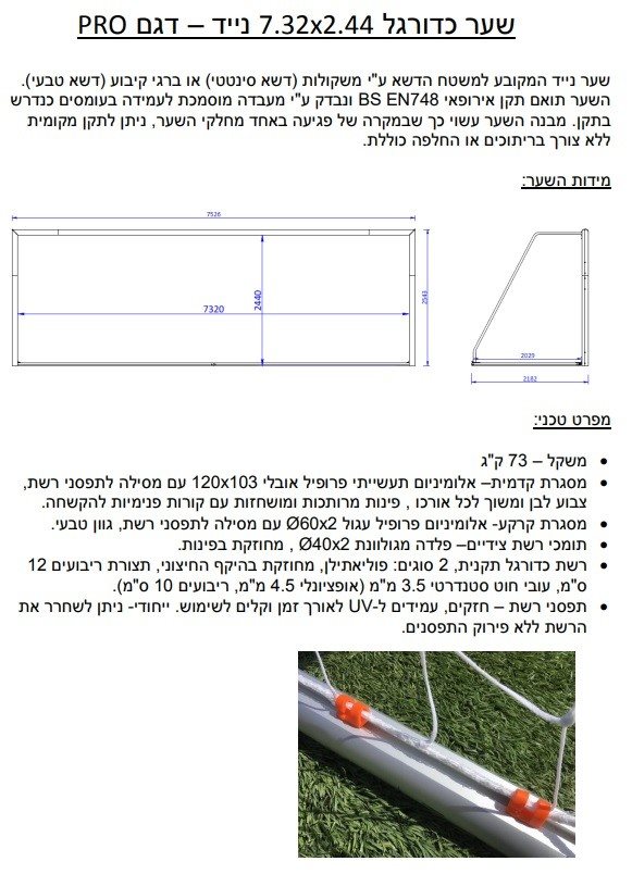 שער כדורגל אלומיניום נייד PRO בגודל 7/2 מטר 100992 מבית CITYSPORT