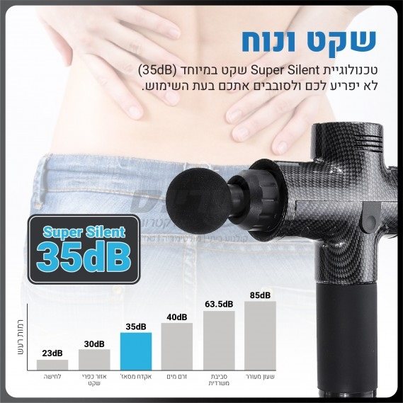 עוצמתי מנוע חזק ועוצמתי 30W בטכנולוגיית BRUSHLESS בעל אורך חיים ארוך במיוחד בהספק של עד 3300 נקישות לדקה. בעל ביצועים גבוהים עם 20 הגדרות מהירות לפי בחירה אישית לעיסוי עמוק ומקצועי והתאוששות השרירים.