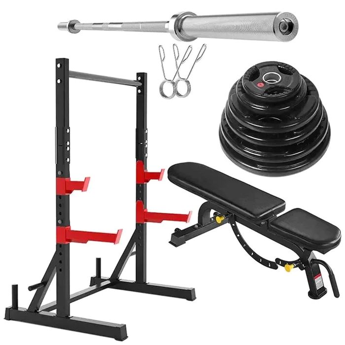 באנדל חבילת חדר כושר של חצי כלוב משקולות יחד עם מוט אולימפי 2.2 מטר 20 ק"ג