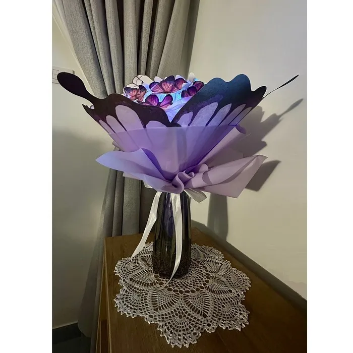 נייר, חוטי מתכת, עטיפה שקופה, נייר עטיפה, אורות לד צבעוניות מתחלפות.