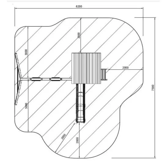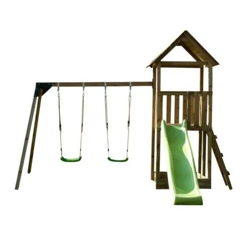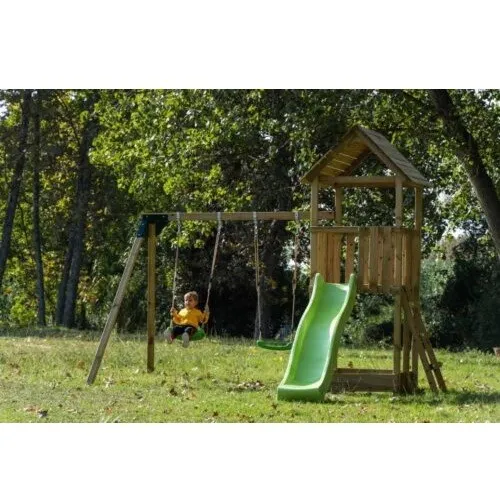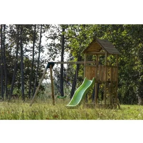 המתקן כולל מגלשה איכותית לבית עץ גובה התקנה 120 ס”מ תוצרת אירופה, כולל מתאם לחיבור מים.