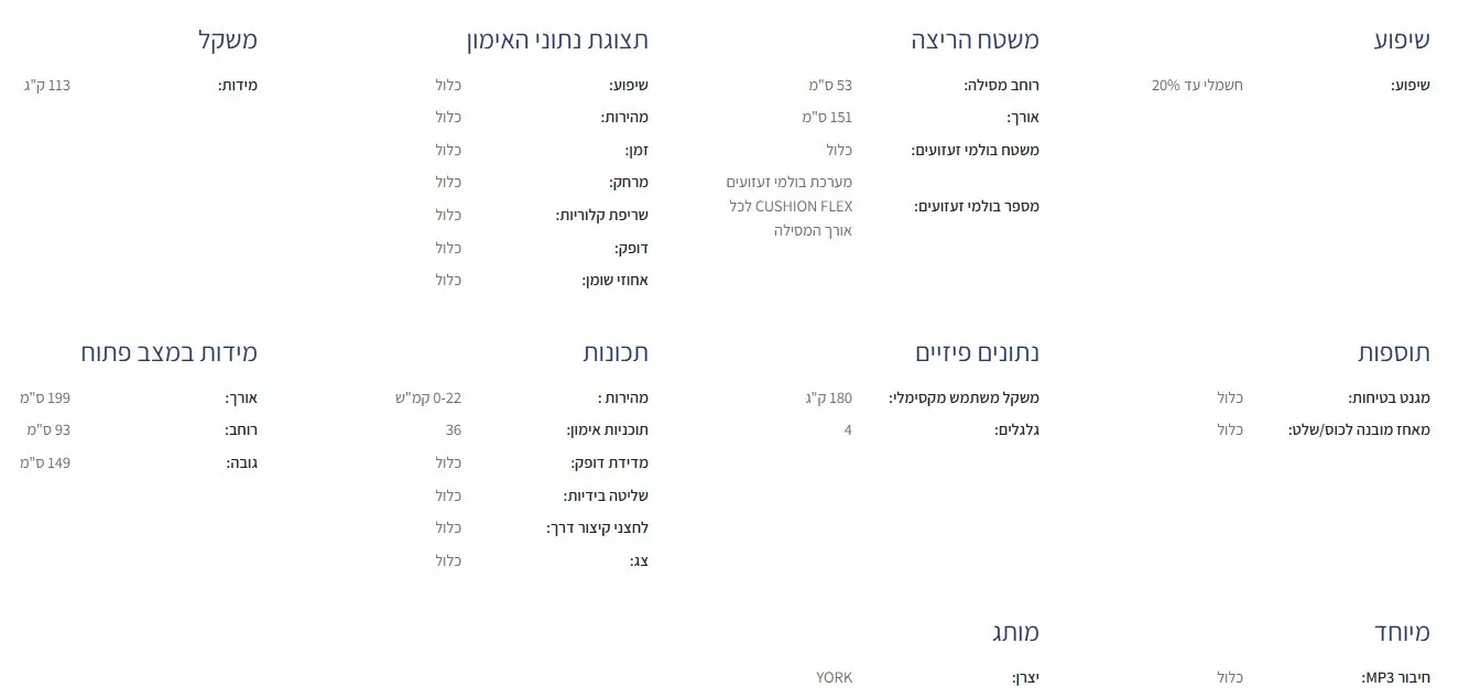 מסלול ריצה חדשני 242490 דגם Sprinter TFT בעל מסך מגע מבית YORK, המותג המוביל בעולם הכושר