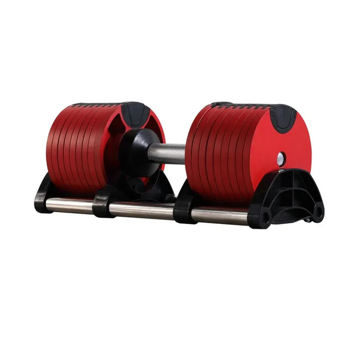 זוג משקולות יד מתכווננות איכותיות מאוד במשקל מ-2 ועד 32 ק”ג, כולל שני תושבות להנחת המשקולות.
