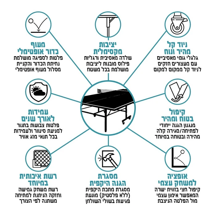 שולחן טניס חוץ מתקפל 250974 פרמיום CITYSPORT BLACK פלטת אלומיניום תעופתי בלתי שבירה 3 שנות אחריות כולל מיקום בפלטה לאכסון מחבטים וכדורים