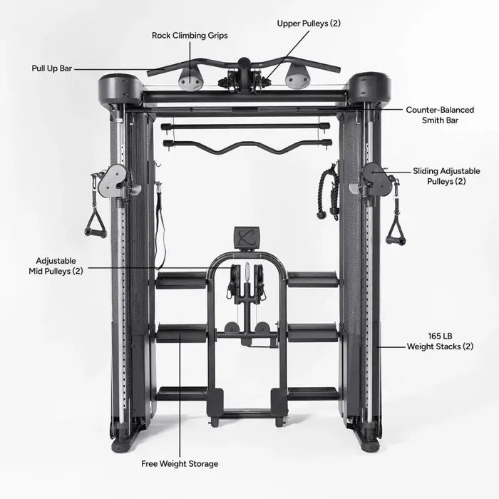 FT2 PRO Functional Trainer הוא תחנת אימונים רב-תכליתית ומקצועית, המיועדת לספק חווית אימון מלאה ומגוונת. עם שילוב ייחודי של מוט סמית' ו-6 גלגלות, המתקן מאפשר ביצוע אינספור תרגילים לחיזוק כל קבוצות השרירים.